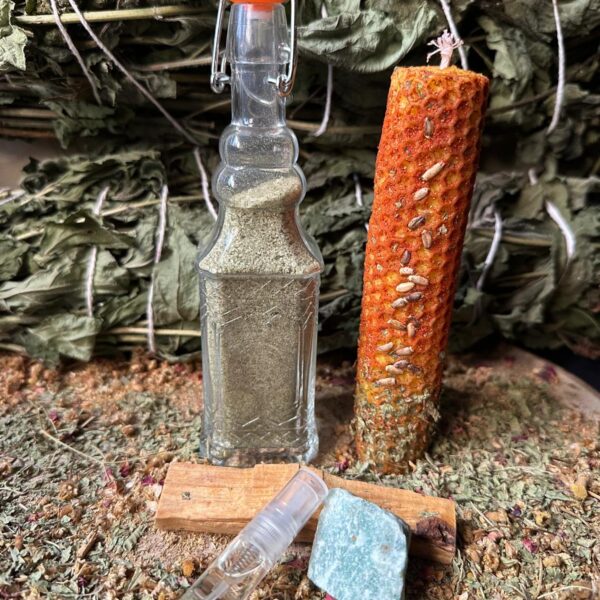 - Una vela ritualizada, con una potente combinación de plantas y un mineral, que nos dará apertura, seguridad, protección y confianza.